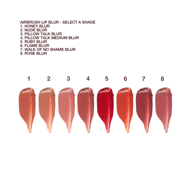 - AIRbrush Flawless Lip Blur in a shade of your choice: My weightless, modern MATTE-MEETS-MOISTURE LIQUID LIPSTICKS that are infused with perfecting Powder-Blur Technology™️ and Hyaluronic Acid to VISIBLY SMOOTH, BLUR + HYDRATE in just one swipe! Choose from the collection of 8 FLAWLESS shades that were BORN BACKSTAGE, including my ICONIC Pillow Talk and Walk of No Shame hues!