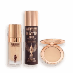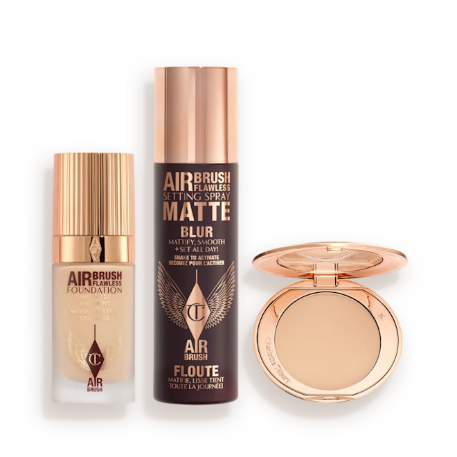 ONLY available on CharlotteTilbury.com and the app, this kit includes my NEW! AIRbrush Flawless Foundation formula to create flawless, full-coverage foundation looks, my NEW! matte setting spray for blurred, matte skin that looks airbrushed, and my award-winning AIRbrush Flawless Finish powder for instant red-carpet skin.