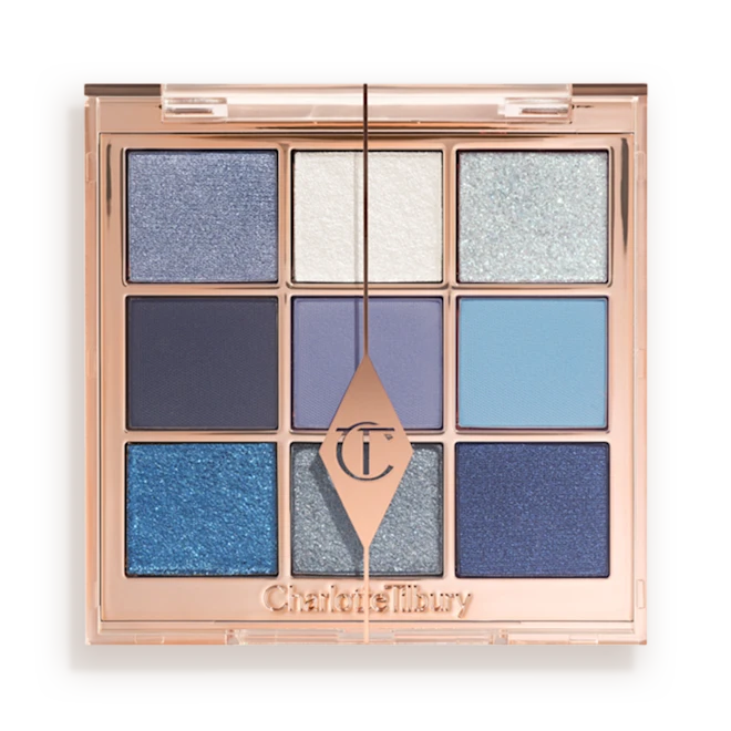 I was meticulous when curating this blue eyeshadow palette! I wanted to create the perfect blue colour story that spanned from sky blue to deepest navy, and each shade needed to work in harmony with the next – from baby blues for the perfect pastel blue to cobalt blues for an electrifying pop of colour and icy white for a dazzling glimmer of pearl on the inner corners of your eyes. Darlings, this palette has all the shades you need to channel this year’s must-wear eye trends… and set new ones!