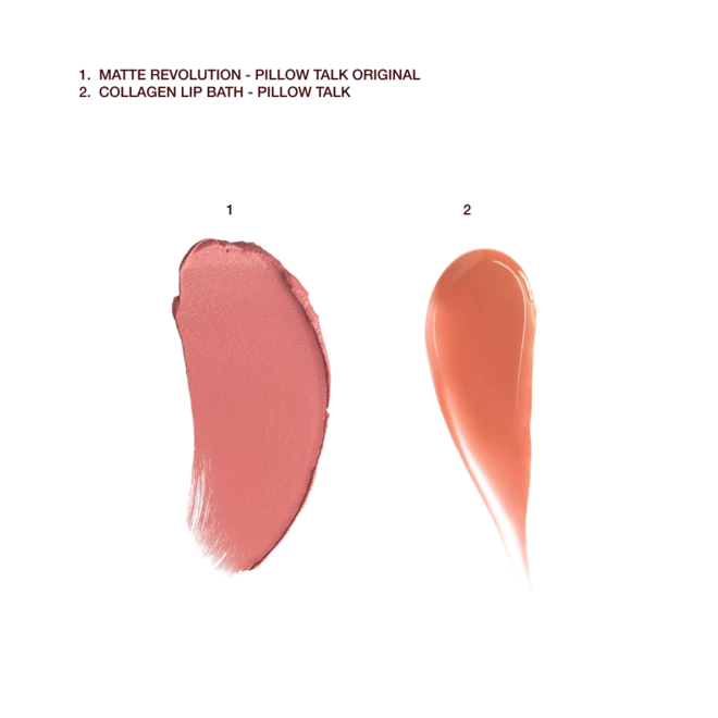 ONLY available on CharlotteTilbury.com and the App, this kit includes my Matte Revolution Lipstick and Collagen Lip Bath in shades of your choice.