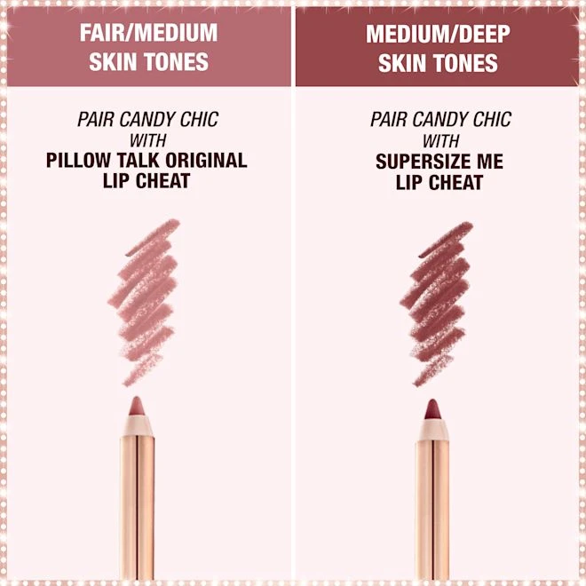 Wear with Lip Cheat in Supersize Me to resize the look of your lips for the ultimate Hollywood pout! If you have a fairer skin tone, choose Lip Cheat in Pillow Talk Original as your matching lip liner!