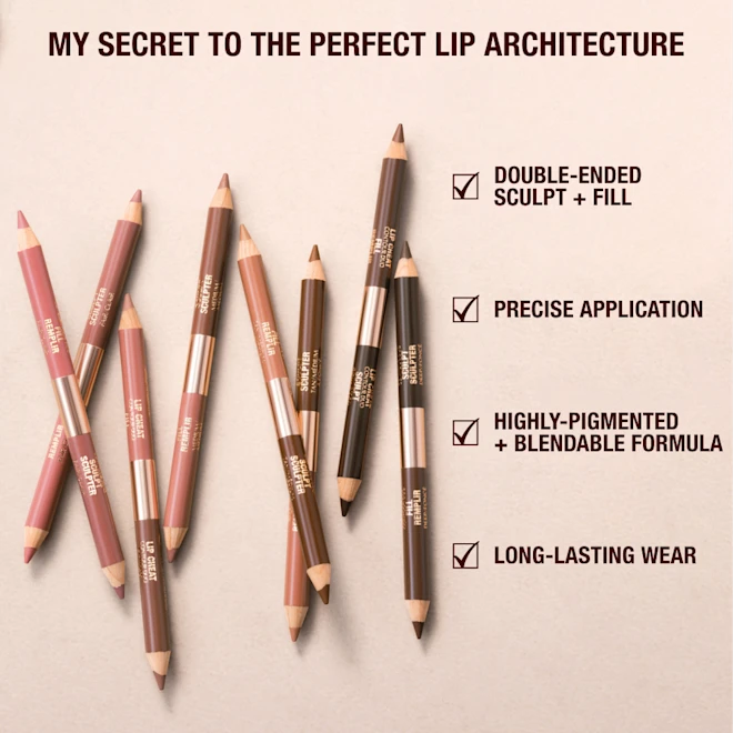 Line + define with Lip Cheat Contour Duo – my 2-in-1 lip pencil that mimics the appearance of natural shadows for an easy lip contour effect.