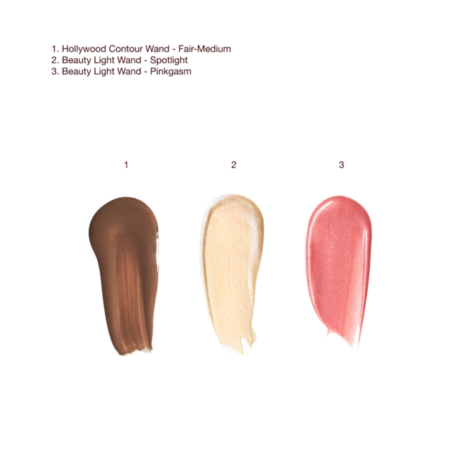 ONLY available on CharlotteTilbury.com and the App, this kit includes my Hollywood Superstar Glow Kit with 2 mini Beauty Light Wands and my Hollywood Contour Wand!